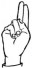 На ћирилици написано МИЊА ГРАНУЛА састоји се из 11 слова [?]. Исписано ћириличном једноручном азбуком за глувонеме: